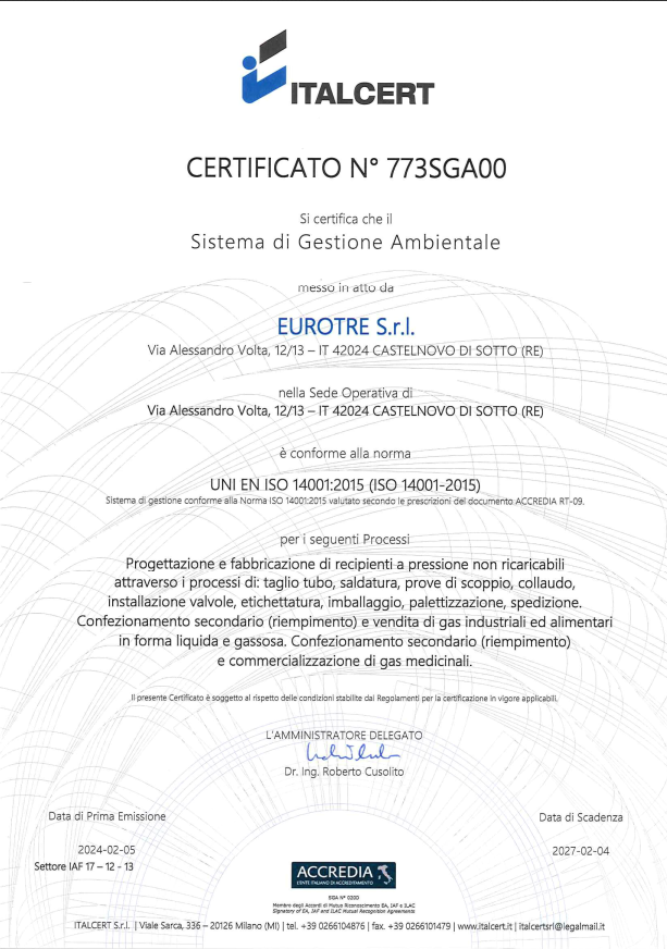 In 40 years of activity and with tens of millions of cylinders manufactured and sold all over the world, EUROTRE has achieved very high standards of reliability and safety.