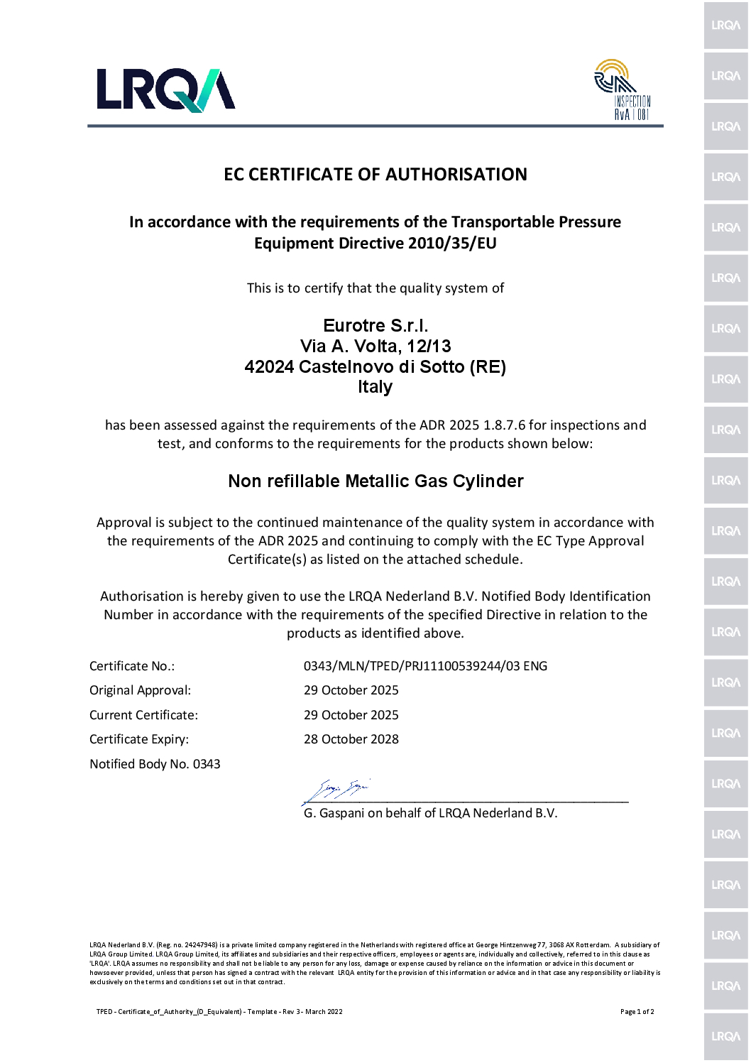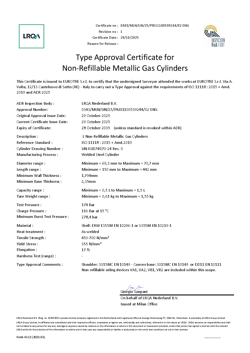 In 40 anni di attività e con decine di milioni di bombole realizzate e vendute in tutto il mondo, EUROTRE ha raggiunto elevatissimi standard di affidabilità e sicurezza.