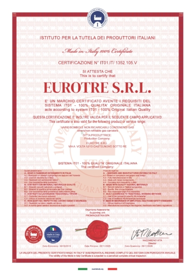 In 40 anni di attività e con decine di milioni di bombole realizzate e vendute in tutto il mondo, EUROTRE ha raggiunto elevatissimi standard di affidabilità e sicurezza.